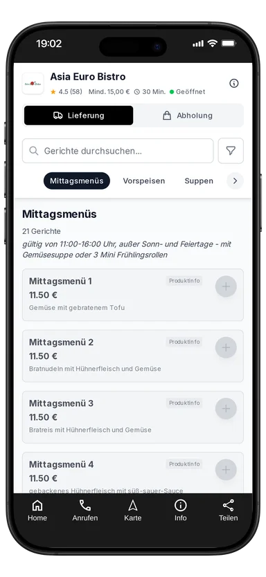 gültig von 11:00-16:00 Uhr, außer Sonn- und Feiertage - mit Gemüsesuppe oder 3 Mini Frühlingsrollen